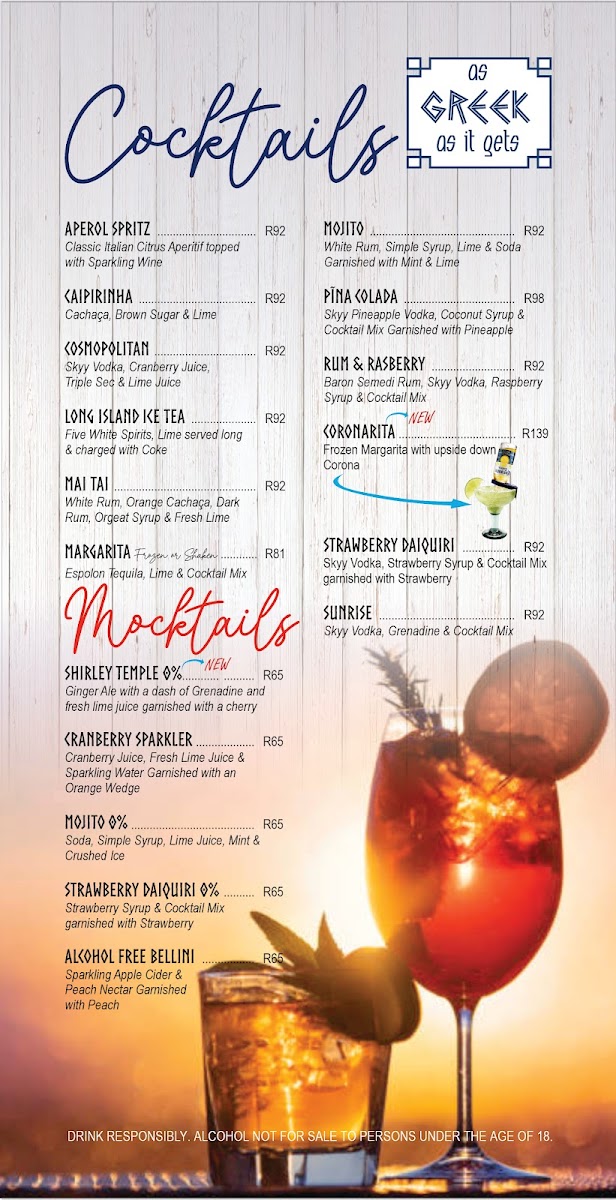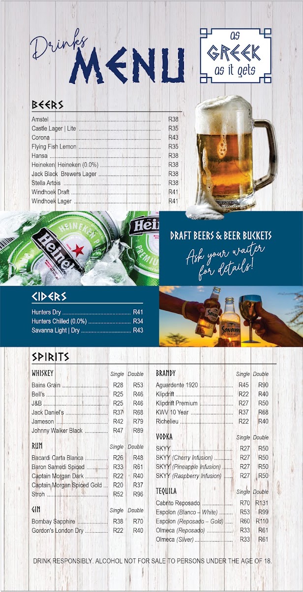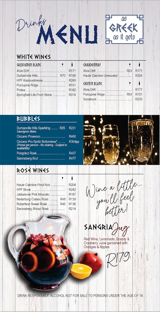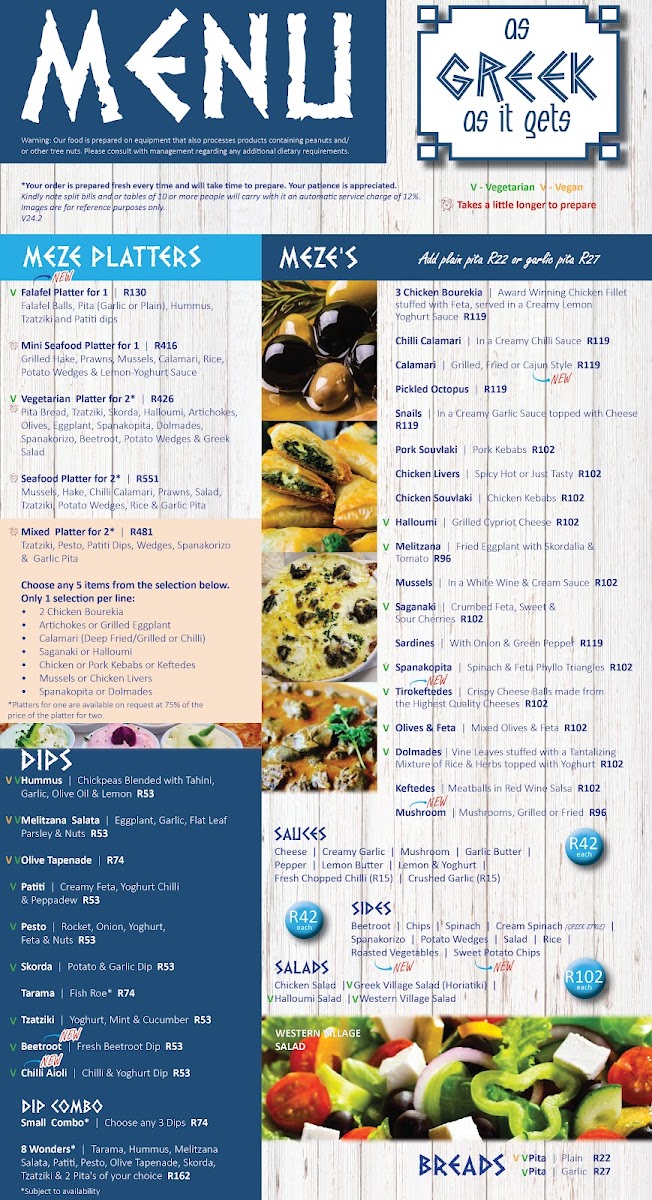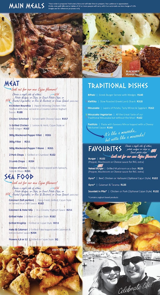 Introducing the menu at AS GREEK AS IT GETS PRETORIA (Menlo Park), a gem nestled in Greenlynn Village. This Greek restaurant transports diners to a Mediterranean paradise, highlighted by its welcoming ambiance and delicious offerings. Guests rave about the culinary delights ranging from succulent lamb chops to perfectly cooked prawns and the highly praised vegetarian moussaka. The menu showcases traditional dishes infused with authentic flavors, catering to both meat lovers and vegetarians alike.
